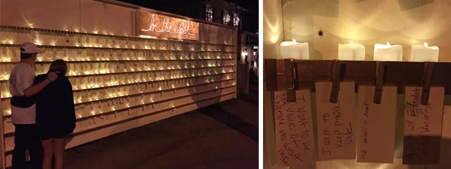 On Saturday, as part of our We Live Big initiative to promote human flourishing, we launched a new community art project. "Be the Light" helps people reflect on their greatest gifts and encourages them to share those gifts with others. A huge 26' x 8' shelving unit holds spaces for over 1,000 intentions and candles. People write how they will "be the light" then illuminate a candle to symbolize their light in the world.